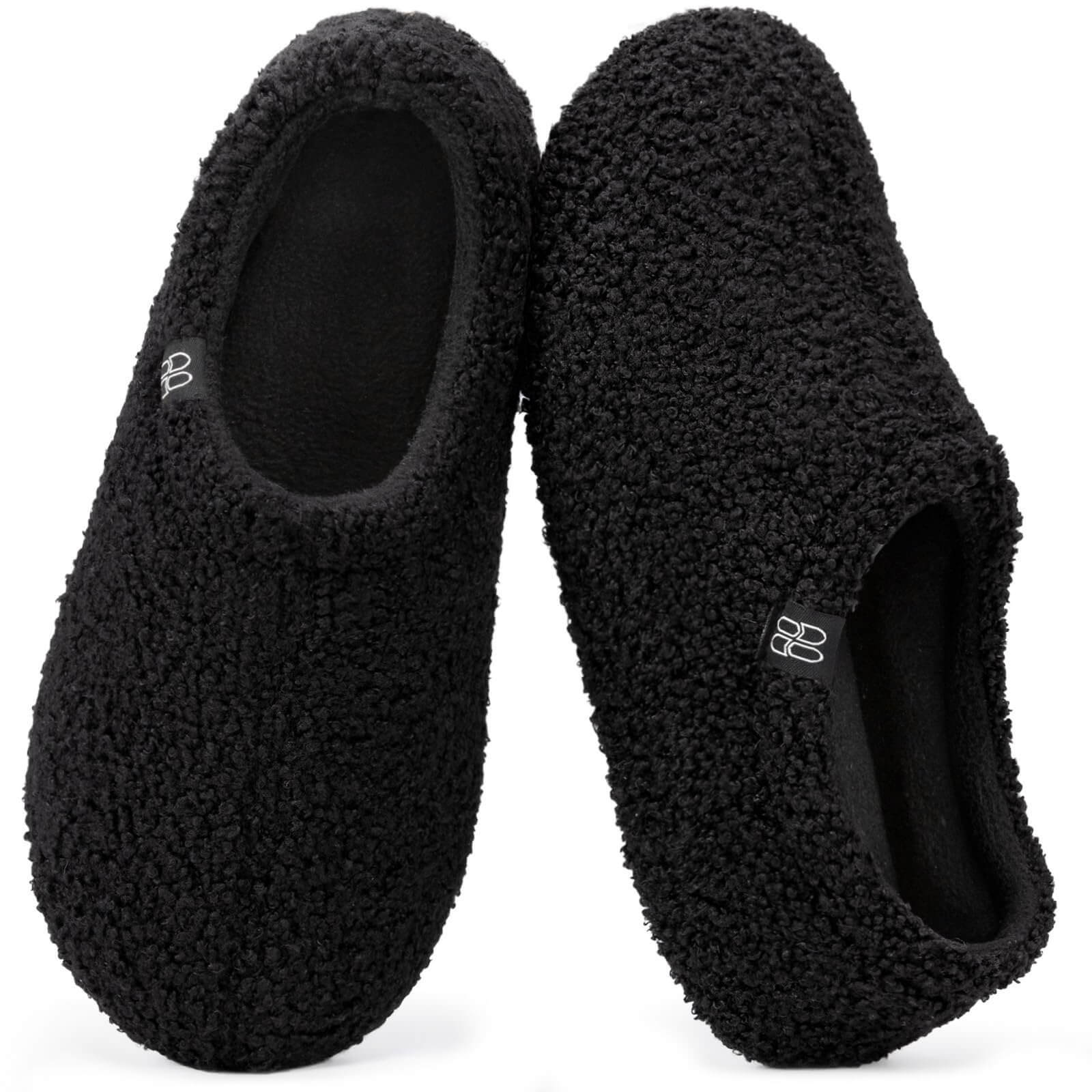 HomeTop Women's Fuzzy Curly Fur Memory Foam Loafer Slippers with Polar Fleece Lining